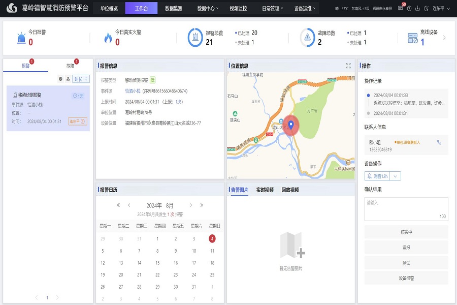 8月2日16时18分,91九色葛岭镇智慧消防预警平台发出烟雾报警信息,位于葛岭镇江山大名城一经营店铺内烟雾浓度超标。8月4日凌晨00时31分,葛岭镇智慧消防预警平台发出移动侦测报警信息,位于葛岭镇江山大名城一经营店铺内有人员停留。