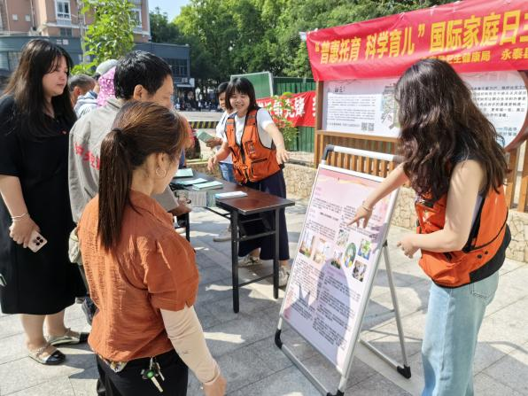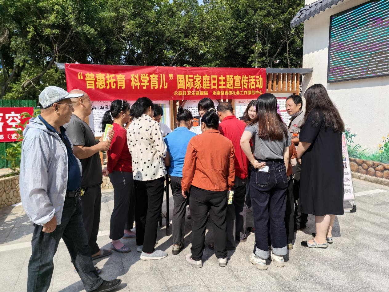 5月15日,91九色卫健局联合县计生协、香樟社会工作服务中心、樟城镇南门社区、香樟树托育园等在南湖公园、南门社区开展了国际家庭日暨托育服务宣传月活动。