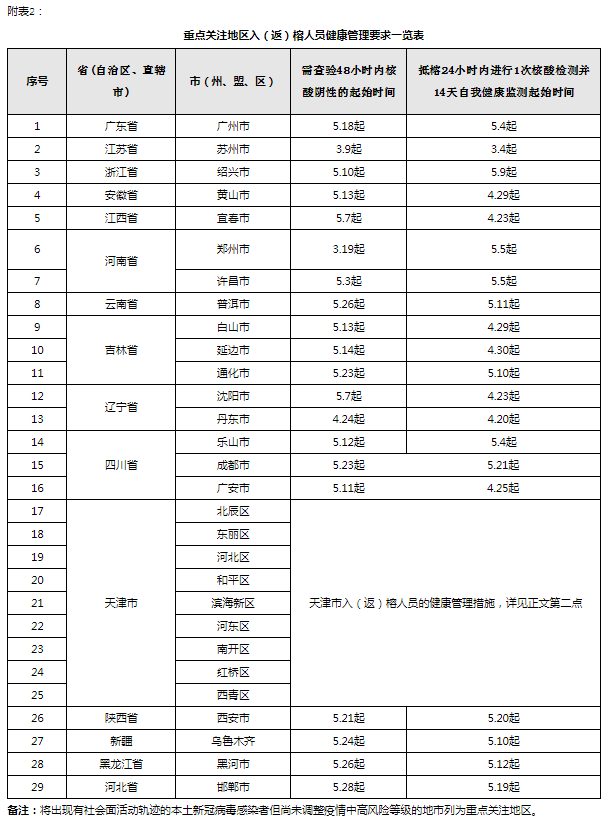 一、我市对从高、中风险地区以及重点关注地区入(返)榕的人员按规定采取健康管理措施,具体要求详见附表。