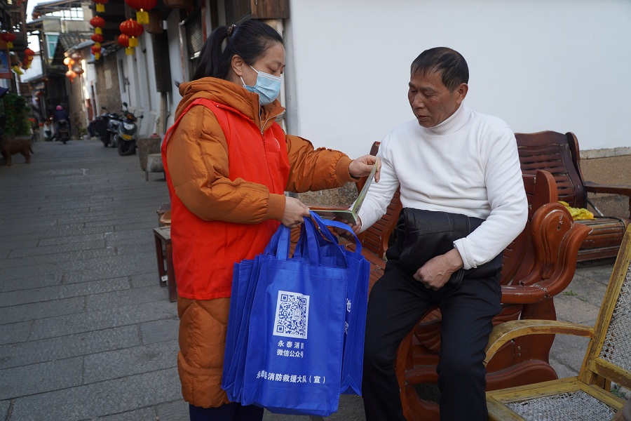 冬季寒冷而干燥的气候更容易发生火灾。为进一步增强农村留守老人消防安全意识,确保居民尤其是独居、孤寡老年人群用火用电用气安全,永泰大队组织乡镇消防志愿者积极开展“敲门守护”消防安全行动,排查消防隐患,宣传消防知识,全力守护辖区消防安全。