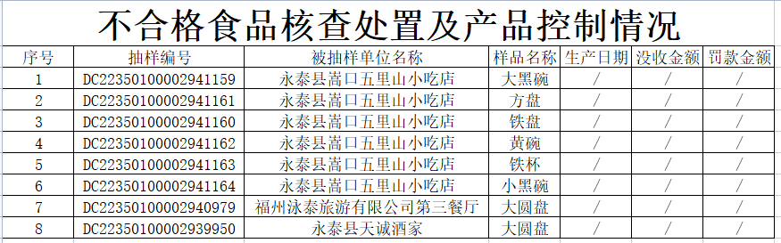 现将不合格食品核查处置情况通告如下: